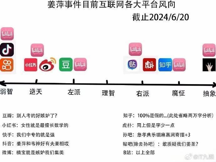 抖音快手等短视频平台是“挺姜派”的大本营,这些平台的用户大多数是无产阶级和中下层小资产阶级。广大人民群众对于阶级背景相近的中专生姜萍表现出了一贯的朴素善良,他们从“底层逆袭”的故事里获得了相当的慰藉,这是可以理解的。我们能够观察到这一派繁杂言论当中的一些进步因素,例如“要质疑怎么不一起质疑其他人”的论点,为什么只质疑这个中专生。这里已经折射出所谓“考试面前人人平等”是多么骗人的鬼话。而某些所谓“左派大V”则是另一个路数,他们是一贯认为“上面是好的”,幻想要靠青天大老爷来“节制资本”,所以他们就开始对着主办方阿里达摩院发难,要求公开串通造假黑幕,指责阿里初赛权威性太低给了旁人质疑姜萍的口实。不过他们对当前教育体制的态度还不太一致:有人认为姜萍的出现打败了高考特权者正代表着教育体制的胜利;另一些羞羞答答还承认教育体制“有些问题”,以至于差点把姜萍埋没了。这群人在墙内和某些官方支持的建制派小丑合流,不断地欺骗群众,把舆论引导入资产阶级的话语体系中,群众某些关于“背后资本势力”抹黑姜萍的归因就来自于他们的观点,他们一向把任何事件不加分析地和我国私人资本家扯上阴谋论式的关系,披一副红皮来充当官僚资产阶级的辩护士,不批倒批臭这群人,不在群众中间彻底消灭他们的影响力,我们在墙内的宣传就不能前进。另外一些群众诉诸资产阶级法律原则,如要求抹黑者“举证”、保护“隐私权”,又是受到过去网络事件中特色一向挥舞的“网暴”、“造谣”、“侵犯名誉”的影响,等等。包括某些幼稚搞笑的女权言论,一度也成为为姜萍辩护的重要观点。